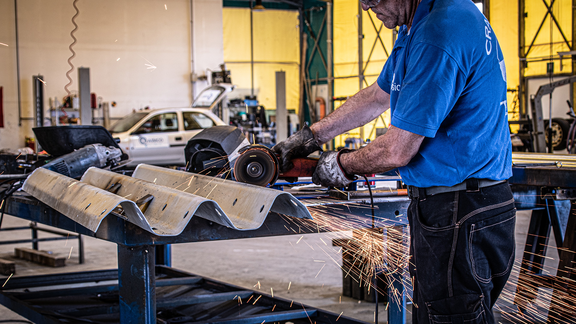 All’interno delle officine si costruiscono anche i prototipi delle soluzioni innovative progettate da AISICO per la sicurezza stradale (Es. T.H.O.R., S.C.Re.W.S).