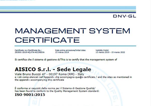 AISICO consegue l’accreditamento secondo la ISO 9001.