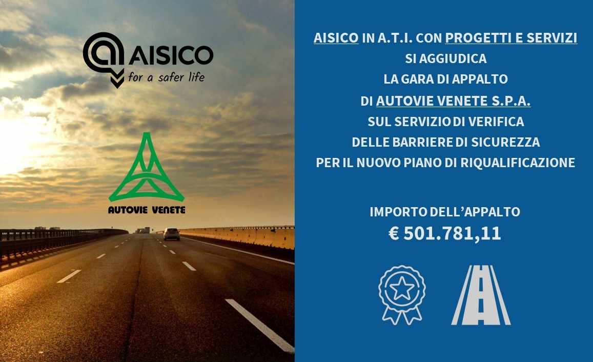 AISICO and Progetti e Servizi win in ATI the tender of Autovie Venete S.p.A. for the verification of road barriers on all sections in operation.