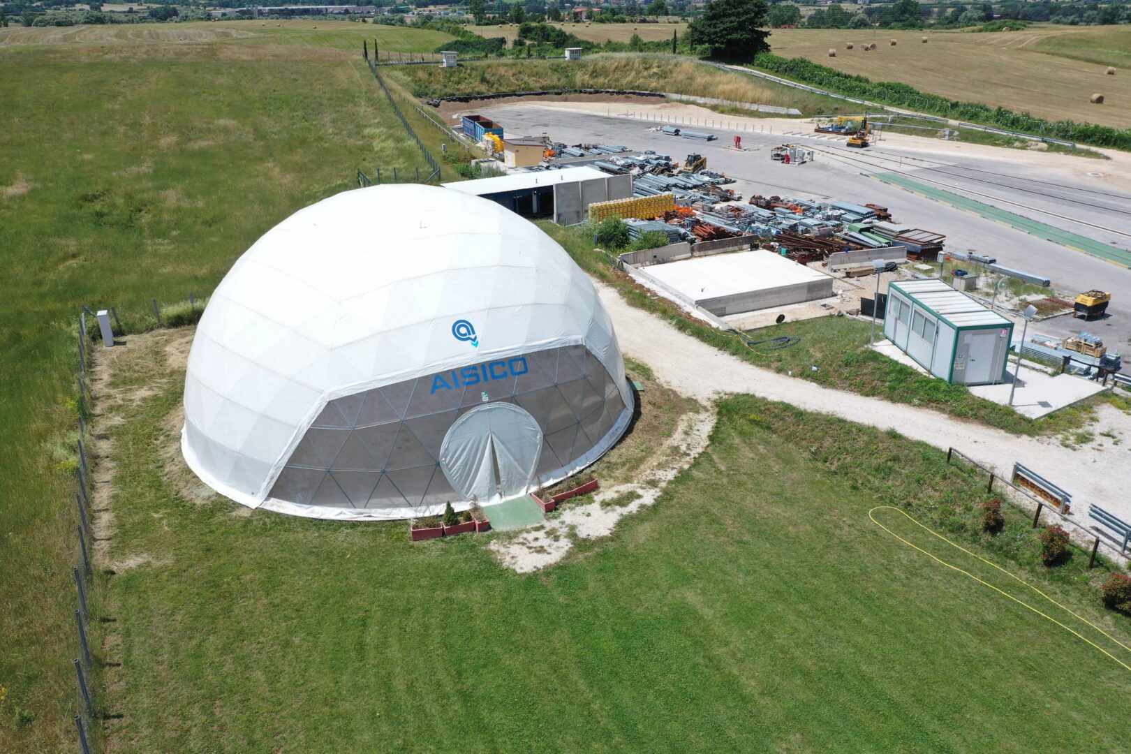 Il Centro Prove dispone anche di una tensostruttura di forma sferica che può ospitare oltre 200 persone, un’ampia zona polifunzionale che può essere adibita per la ristorazione, per l’accoglienza, per meeting all’aperto.