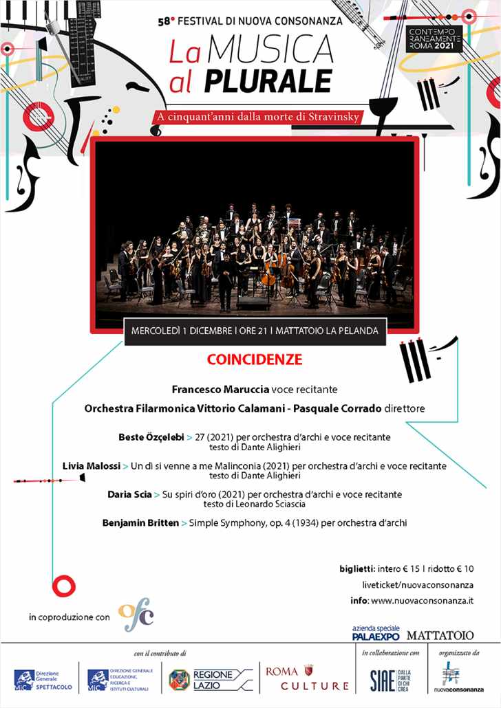 Il prossimo 1° dicembre alle ore 21 a Roma, presso Mattatoio – La Pelanda, l’Orchestra Filarmonica Vittorio Calamani debutterà al Festival Nuova Consonanza con il concerto Coincidenze.