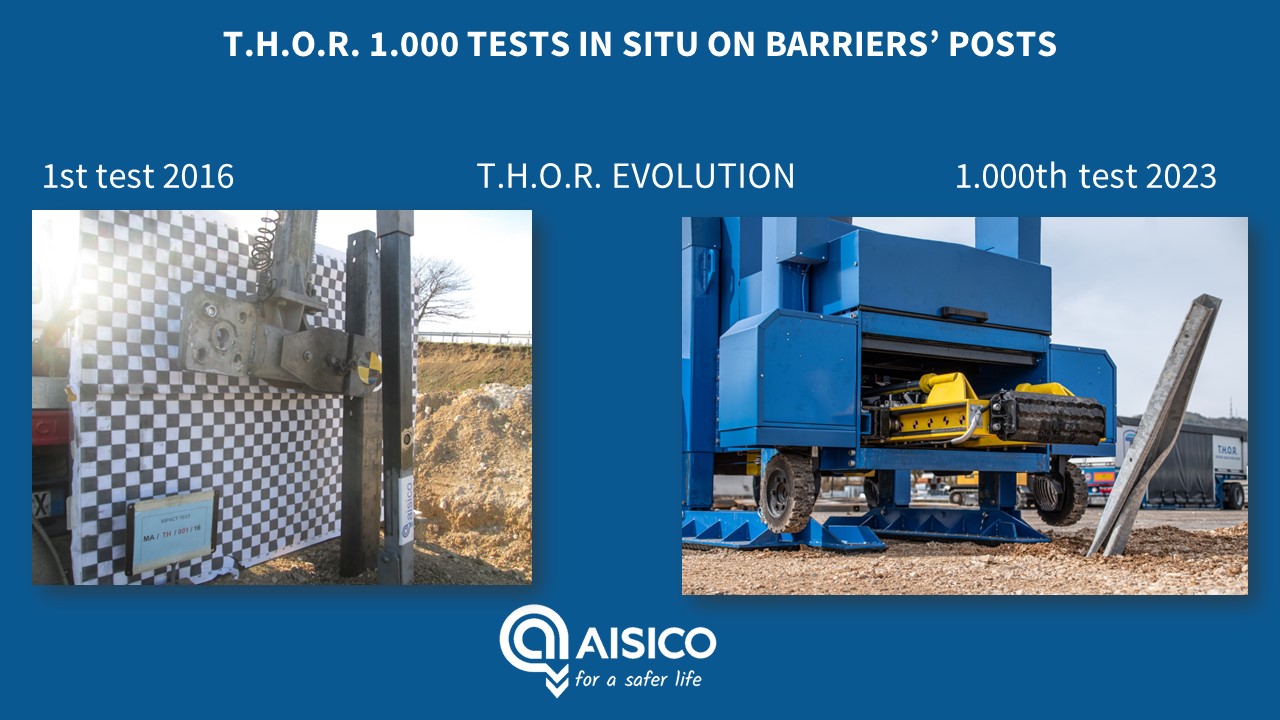 T.H.O.R. – Testing Head Over Road nasce nel 2015 e oggi, con l’evoluzione T.H.O.R. 3, è possibile testare, mediante prove di impatto dinamico e attraverso l’utilizzo di un sistema propulsivo dinamico, l’affidabilità delll’interazione tra terreno e montante della barriera in situ, consentendo il confronto con i risultati ottenuti in campo prove, con il medesimo dispositivo.