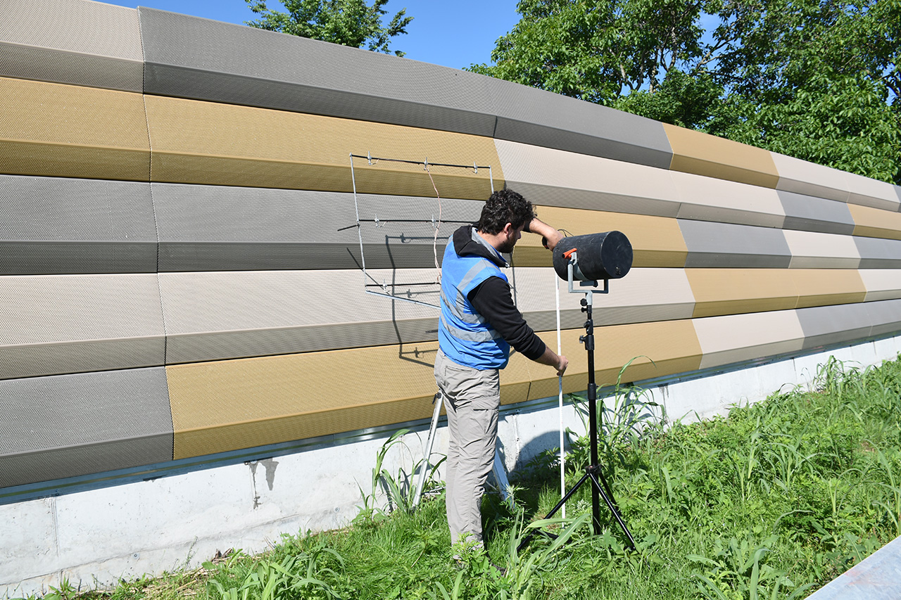 Una prova che misura le caratteristiche intrinseche dei valori di riflessione sonora e di isolamento acustico per via aerea dei dispositivi di riduzione del rumore progettati per strade in condizioni non riverberanti. Essa può essere applicata sia per qualificare i prodotti da installare lungo le strade sia per verificare la conformità dei dispositivi di riduzione del rumore installati per quanto riguarda le specifiche di progettazione.
